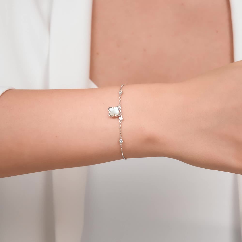 Серебряный браслет с фианитами и перламутром природным