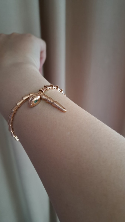 Просто великолепный браслет! Очень красивая змейка! Подвижный хвостик и зелёные глазки! Теперь он любимый!!!