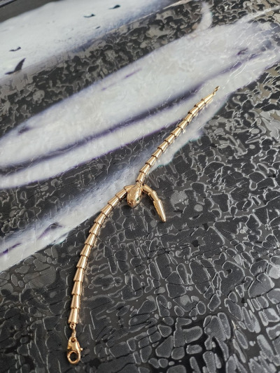 Браслет не однотипный, такой встречается редко, увидев- влюбилась. В носке удобный, на руке смотрится хорошо, стоял выбор между жёстким и этим, выбрала этот, за счёт подвижного хвостика, змейка как-будто оживает на руке! Благодарю создателей этой красоты! В наборе имеется колье, хочется, чтоб придумали кольцо и серьги!