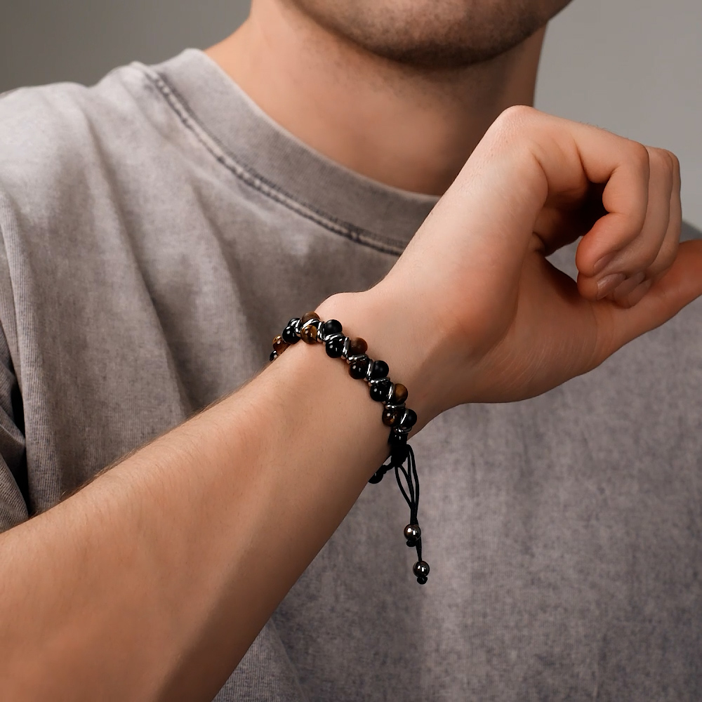 Стальной браслет с тигровым глазом и агатом природным