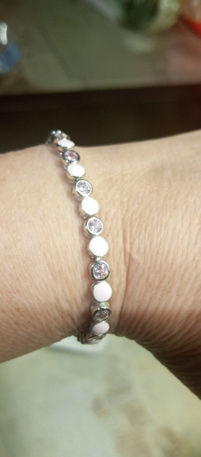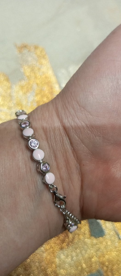 Ооооочень красивый браслет увидела его в витрине и влюбилась. Дождалась скидку на день рождения и подарочную карту и заказала. Сначало колебалась между голубым но этот нежный и очень милый. Фианит очень красиво блестит и розовая эмаль тоже смотрится шикарно. Ни разу ни пожалела что купила. Спасибо санлайт за скидочки и подарки