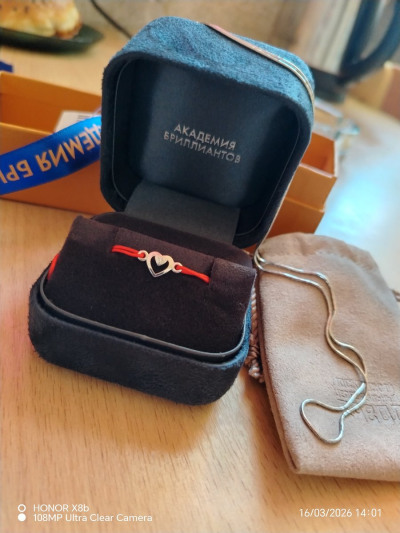 Покупкой довольна.Из академии брилиантов не было изделия с красной ниточкой сегодня пополнила им.Сердечко красивое на руке смотриться хорошо.Буду носить в паре ранее покупала сердечко из золота.