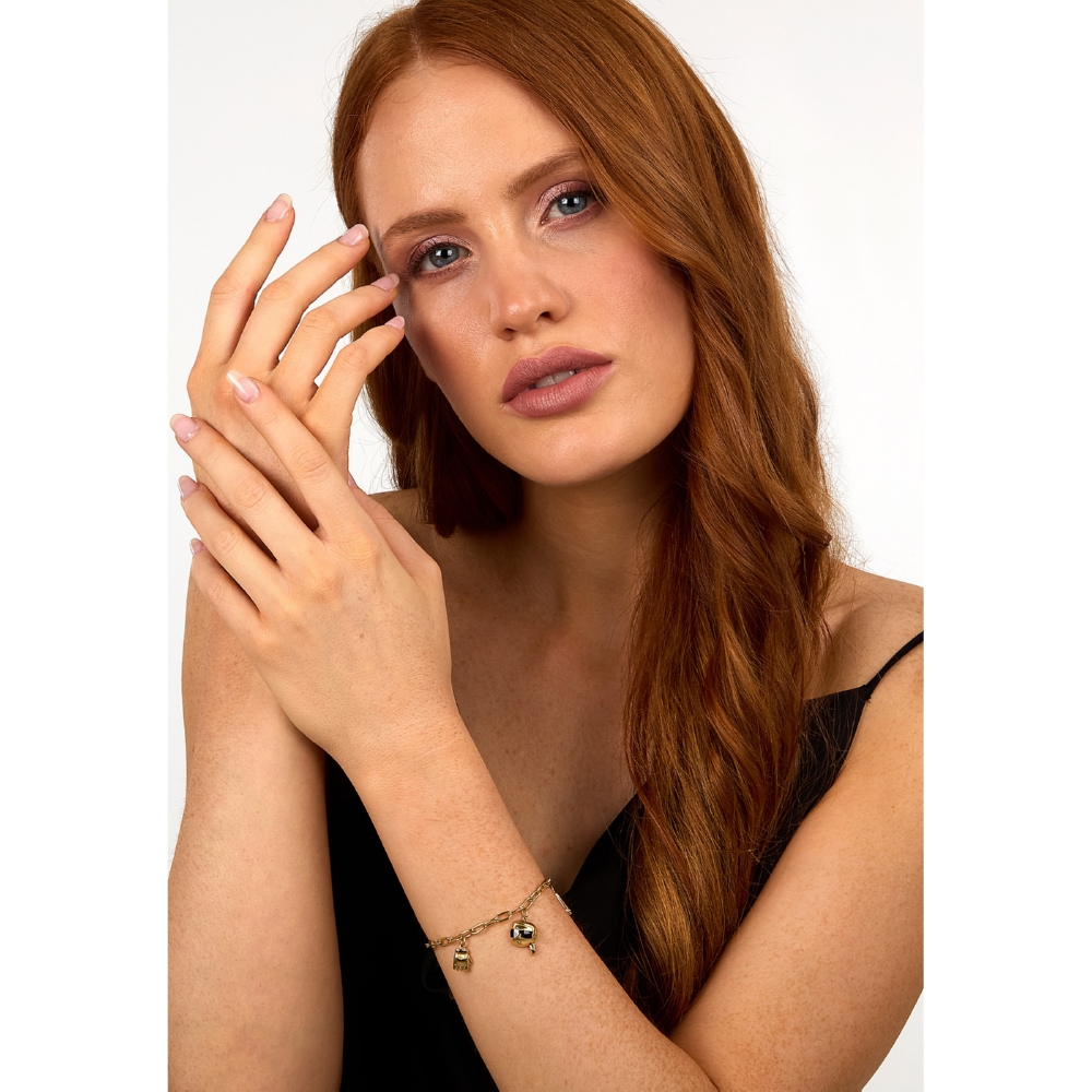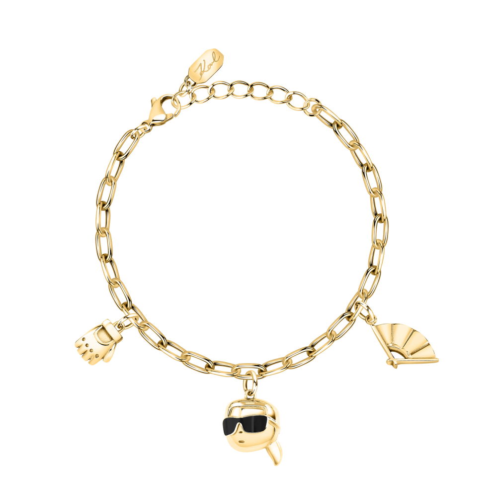 • Браслет из коллекции бижутерии KARL LAGERFELD Charms. Яркий дизайн изделия: вставка из черной эмали на стальном корпусе цвета желтое золото, переосмысливает визульные коды бренда, следуя неповторимому дерзкому стилю кутюрье. Тип застёжки: карабин. Размер изделия 16+3 см. Гарантия 14 дней.