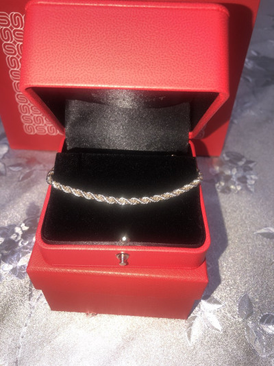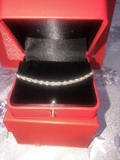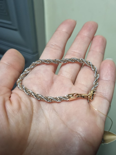 В белом золоте очень нарядно и утонченно смотрится на руке. Браслет вживую ещё лучше, чем на фото. Вес в размере 17 5.08 грамма