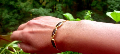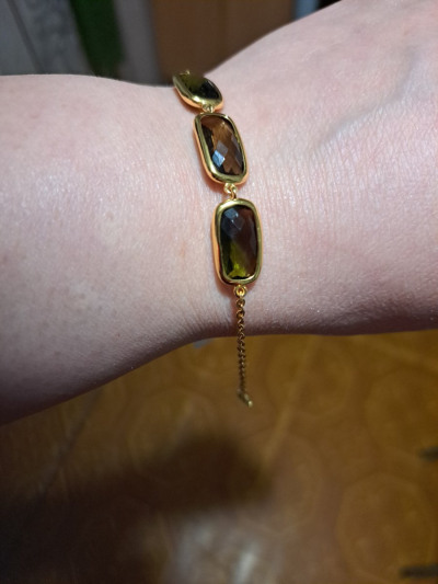 Браслет брала в комплекте с ожерельем! Летом под одежду цвета хаки, зеленых и коричневых тонов придает особый шарм образу. Браслет выглядит как золотой.