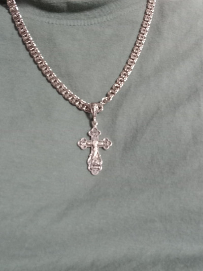 Цепь масивная, тяжёлая, но при носке быстро темнеет, нужно часто стстить