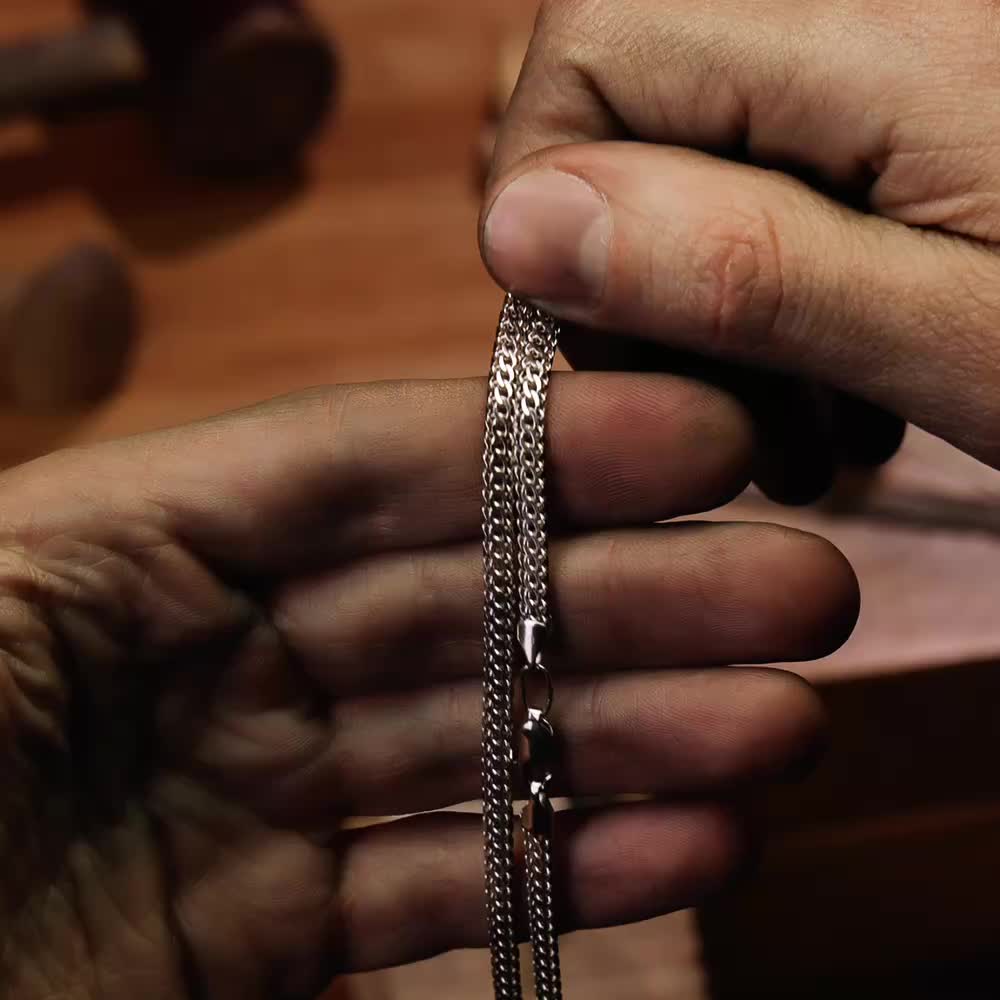 Плетение "Питон" отличается от других своей массивностью и универсальностью. Уникальные украшения создаются с помощью особой техники соединения звеньев. Благодаря этому цепь имеет такую необыкновенную форму и обладает особой прочностью и долговечностью.