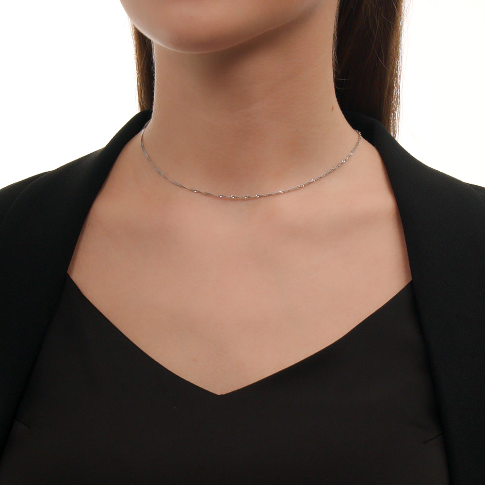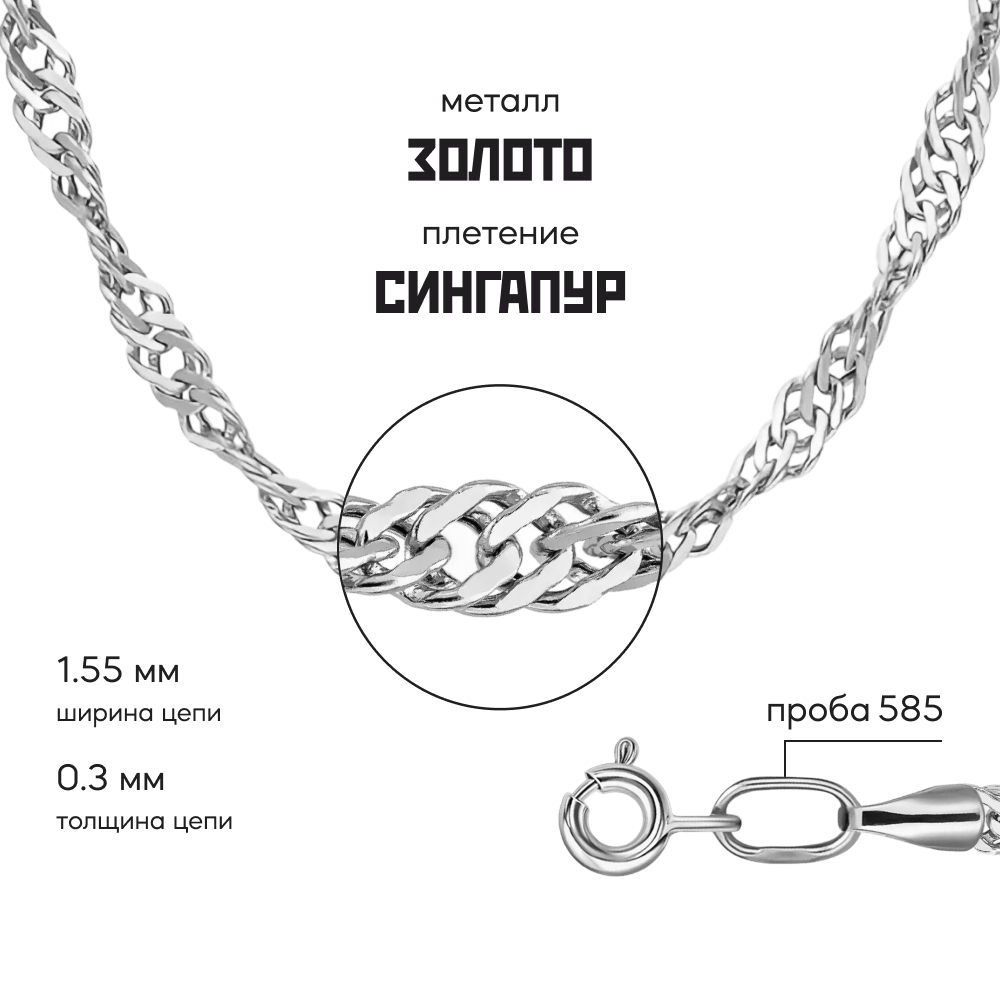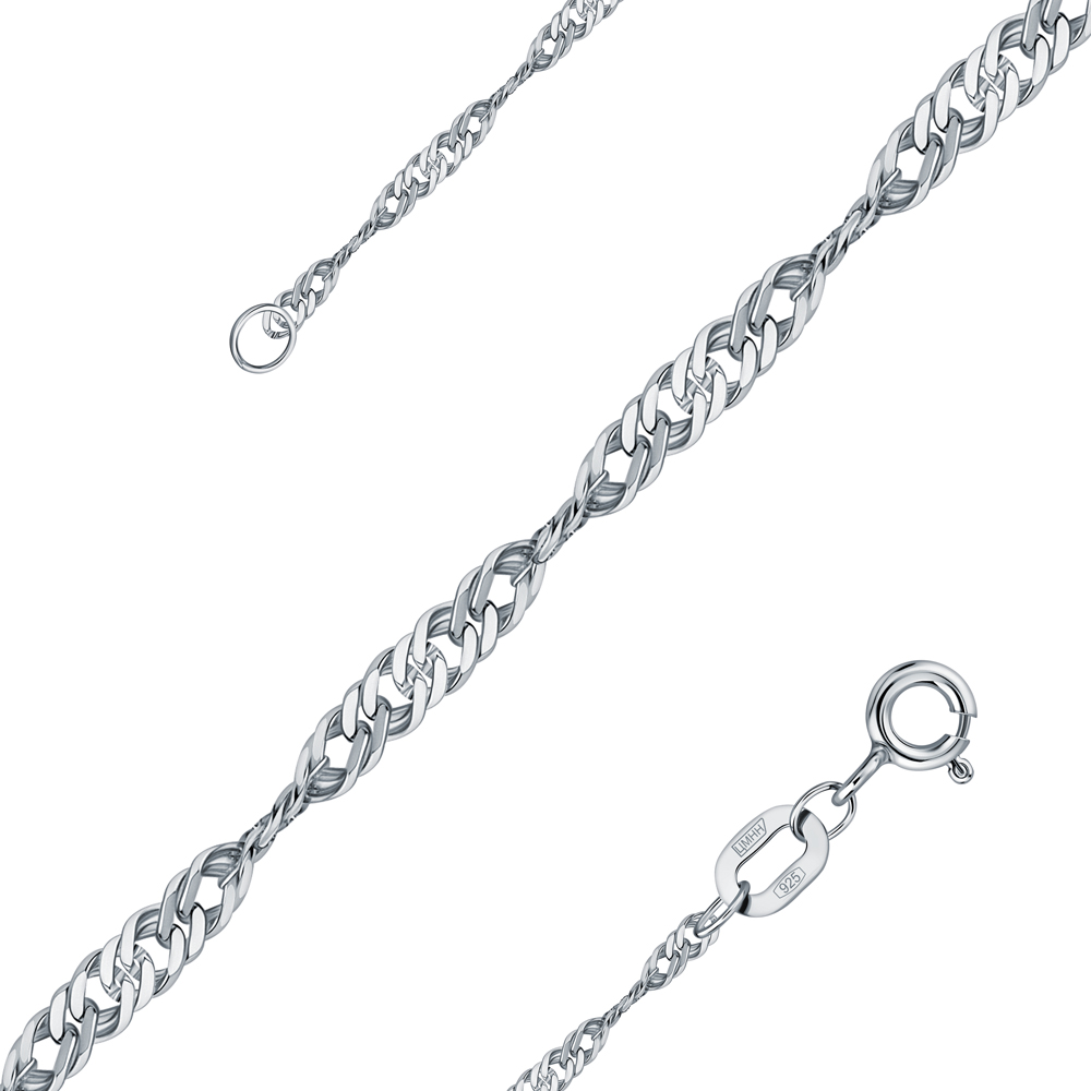 "Сингапур" - плетение на основе двойного панцирного плетения. Звенья в цепи соединены в сложную спиралевидную структуру, обеспечивая потрясающий блеск от солнечных лучей под разным углом.