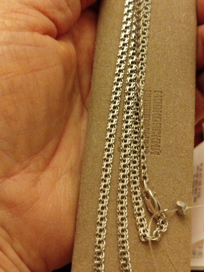 Искала мужскую немассивную, но прочную цепь под крестик. Эта подошла. Акция на обмен серебра +небольшая доплата и новая цепь в подарок. Действительно выгодный обмен. Рекомендую.