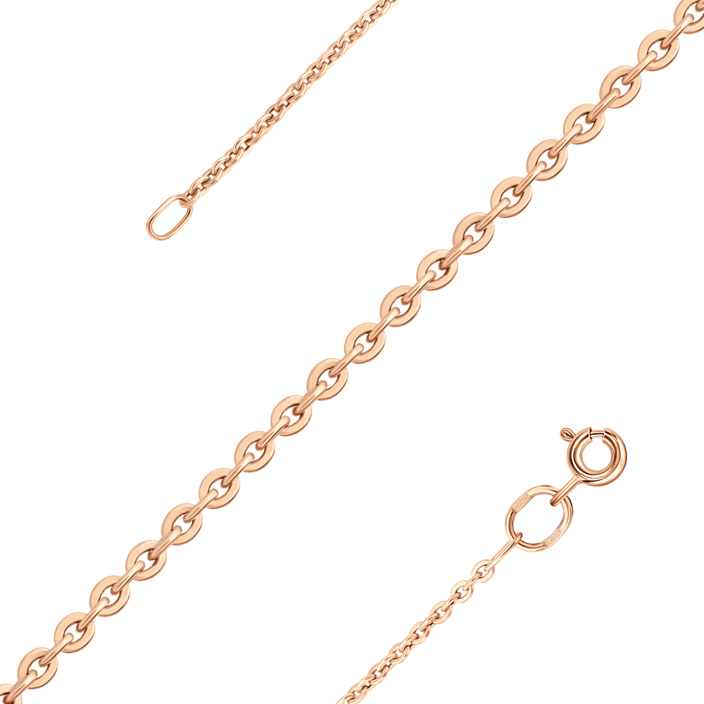 Якорное плетение - настолько надежное, что можно "вешать якорь". Звенья расположены под прямым углом друг к другу, от чего цепь получается объемной и крепкой. Плетение универсально, подходит и женщинам, и мужчинам. Классическая якорная цепь состоит из звеньев продолговатой формы с закругленными концами. Для усиления блеска края обрабатывают алмазной гранью.
