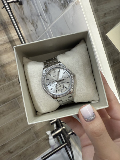 Очень красивые, женственные часики, инкрустированы фианитами, замок бабочка. Размер циферблата оптимальный, на тонкую ручку отлично подойдёт. Ремешок можно отрегулировать прямо в магазине либо самостоятельно, достаточное количество звеньев можно убрать, спасибо.