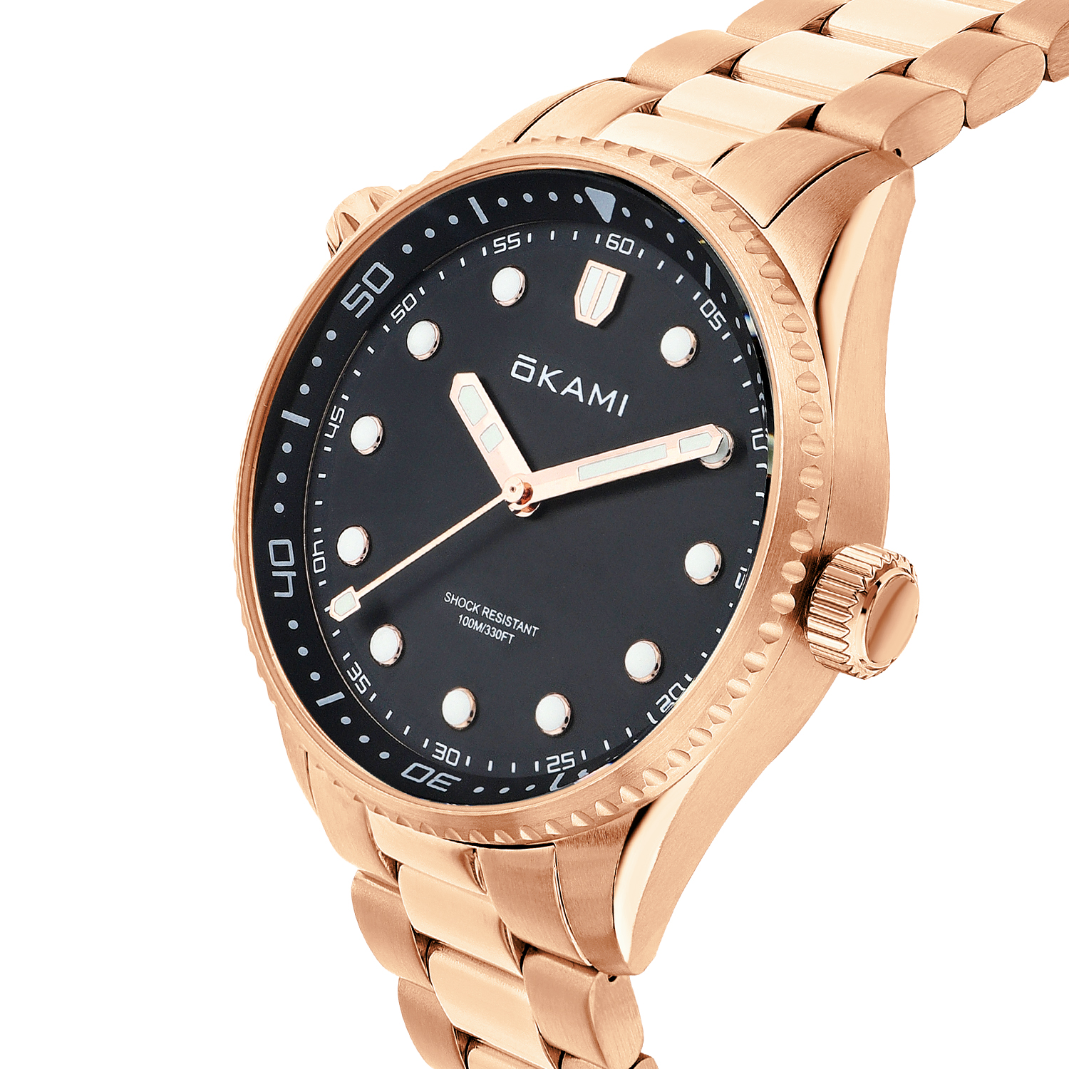 Корпус выполнен из стали, минеральное стекло с антибликом защищает циферблат от внешнего воздействия. Японский кварцевый механизм Seiko VH31 обеспечивает точный ход и оснащен функциями времени в 12 часовом формате и секундной стрелки. Водозащита 10 bar (100 m/330 ft)* позволяет плавать в часах.