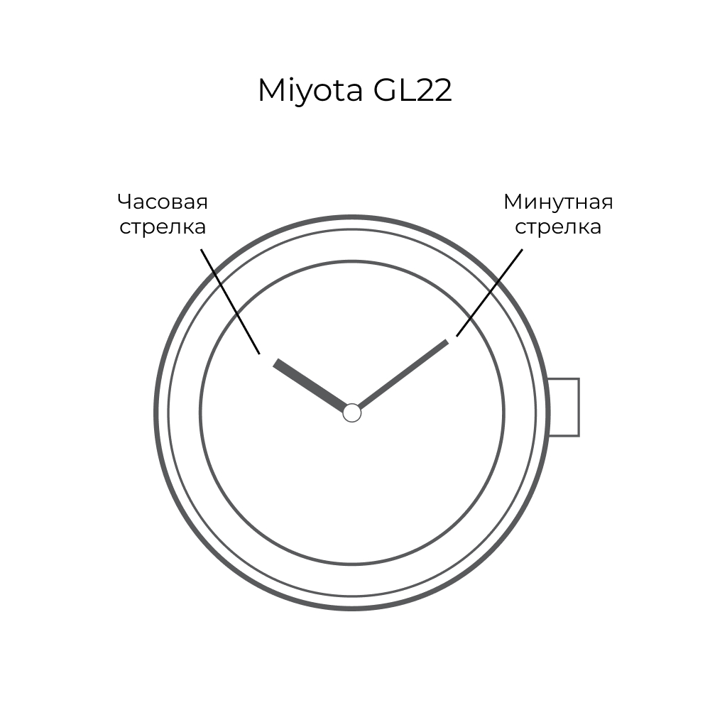 Корпус выполнен из стали, минеральное стекло с антибликом защищает циферблат от внешнего воздействия. Японский кварцевый механизм Miyota GL22 обеспечивает точный ход и оснащен функциями времени в 12 часовом формате и секундной стрелки. Водозащита 3 bar (30 m/99 ft)* защитит от брызг и дождя.