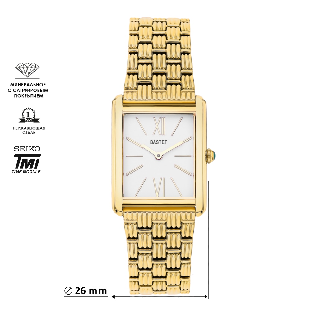 Корпус выполнен из стали 316L, минеральное стекло защищает циферблат от внешнего воздействия. Японский кварцевый механизм Seiko Y120 обеспечивает точность и оснащен функциями времени в 12 часовом формате. Водозащита 5 bar (50 m/165 ft)* позволяет мыть руки в часах, а так же защитит от брызг и дождя.