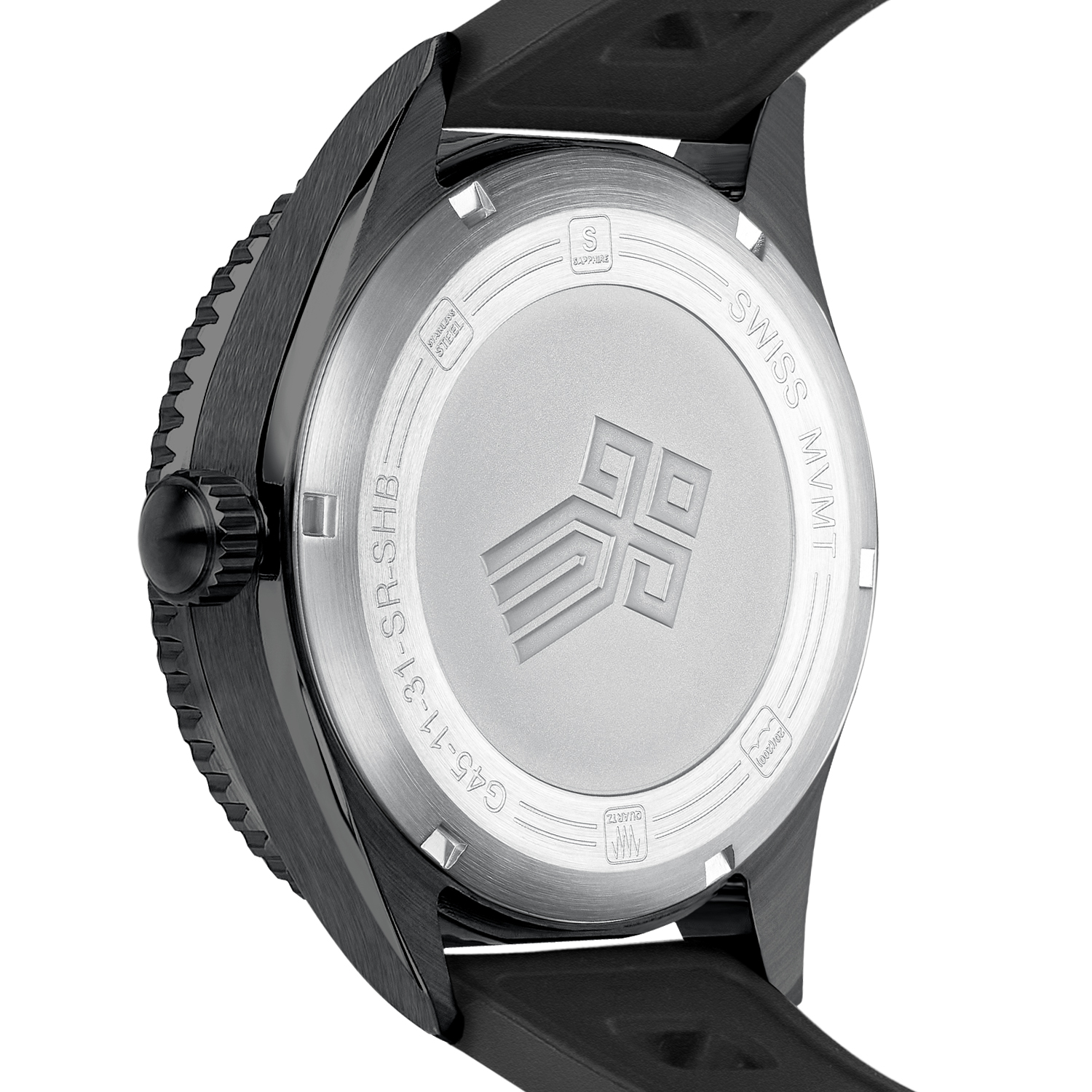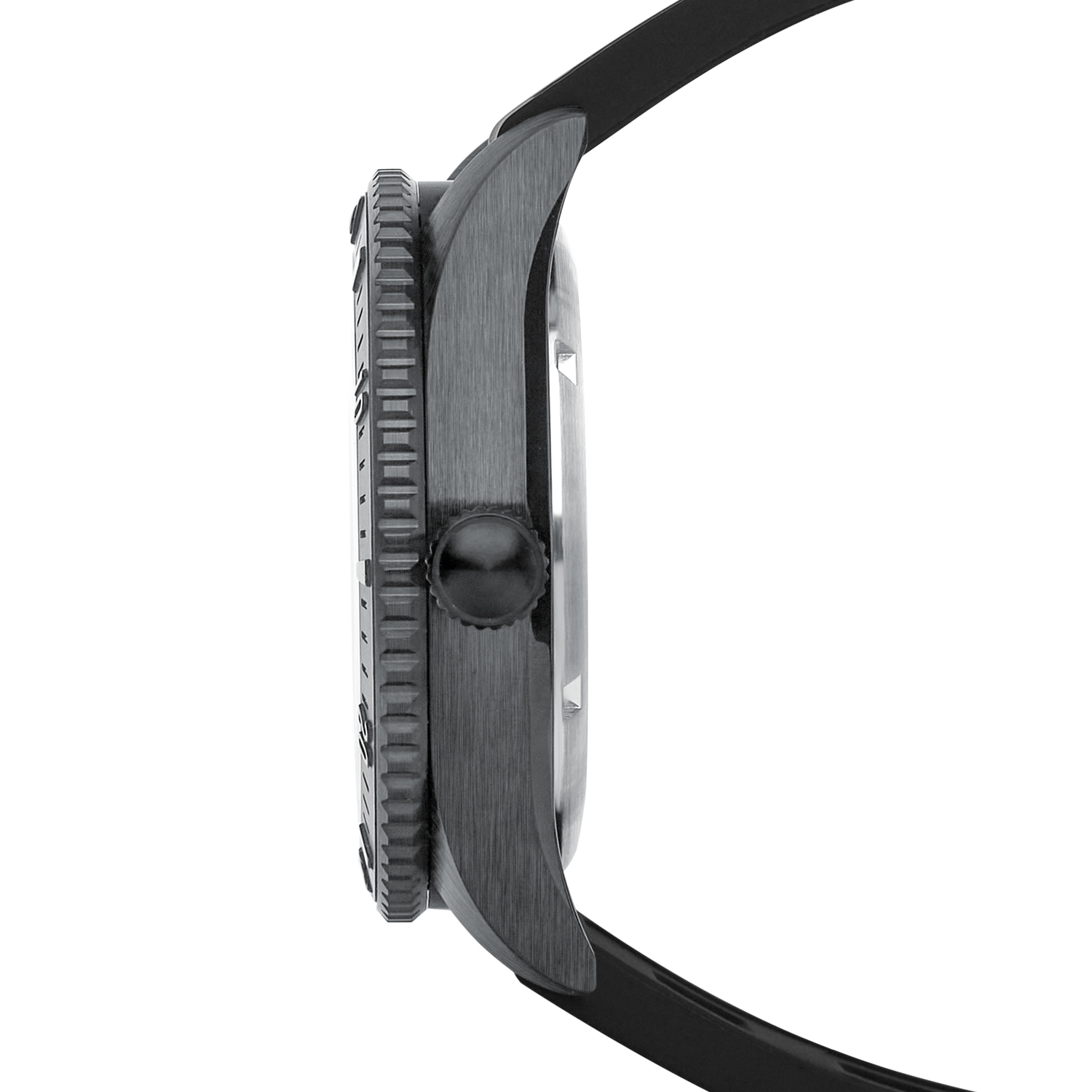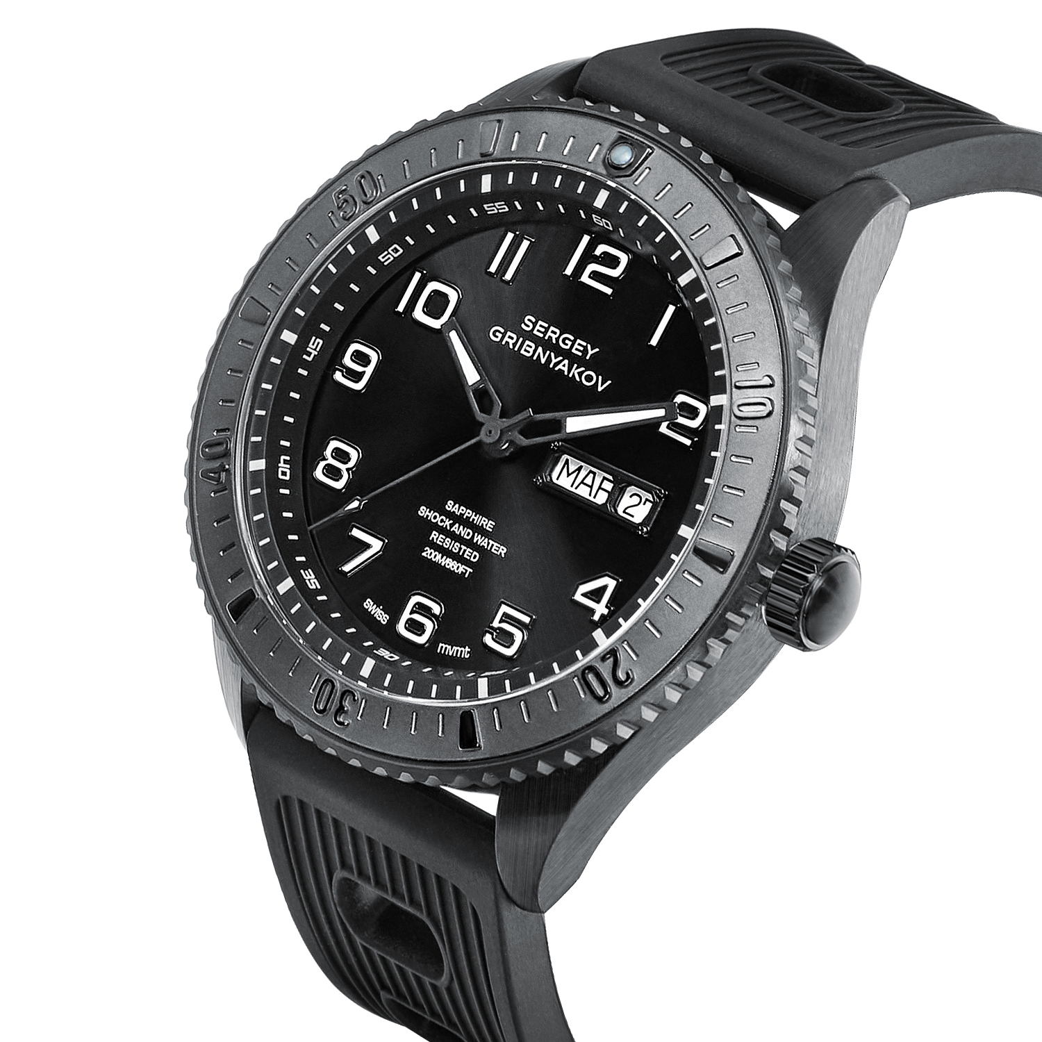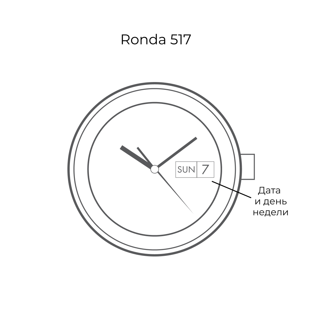 Корпус выполнен из стали 316L, сапфировое стекло с антибликом защищает циферблат от внешнего воздействия. Надежный швейцарский кварцевый механизм Ronda 517 оснащен функциями времени в 12 часовом формате, секундной стрелкой и датой. Водозащита 20 bar (200 m/660 ft)* позволяет плавать и погружаться в часах.