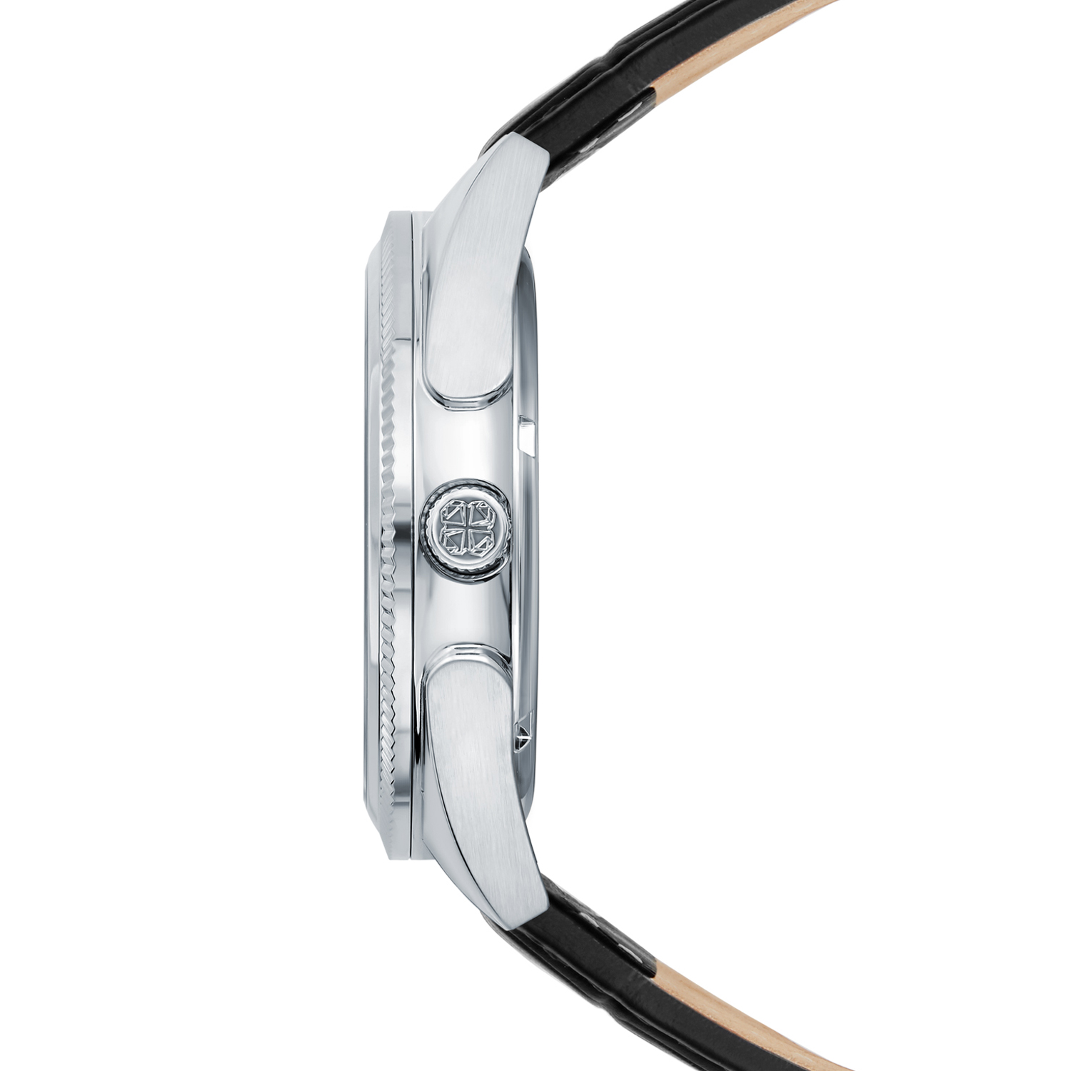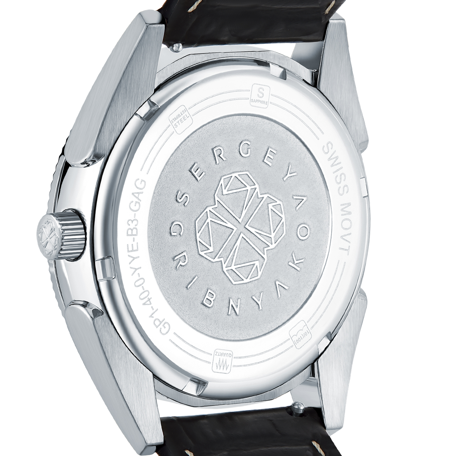 Корпус выполнен из стали 316L, сапфировое стекло с антибликом защищает циферблат от внешнего воздействия. Надежный швейцарский кварцевый механизм Ronda 515 оснащен функциями времени в 12 часовом формате, секундной стрелкой и датой. Водозащита 10 bar (100 m/330 ft)* позволяет плавать в часах.