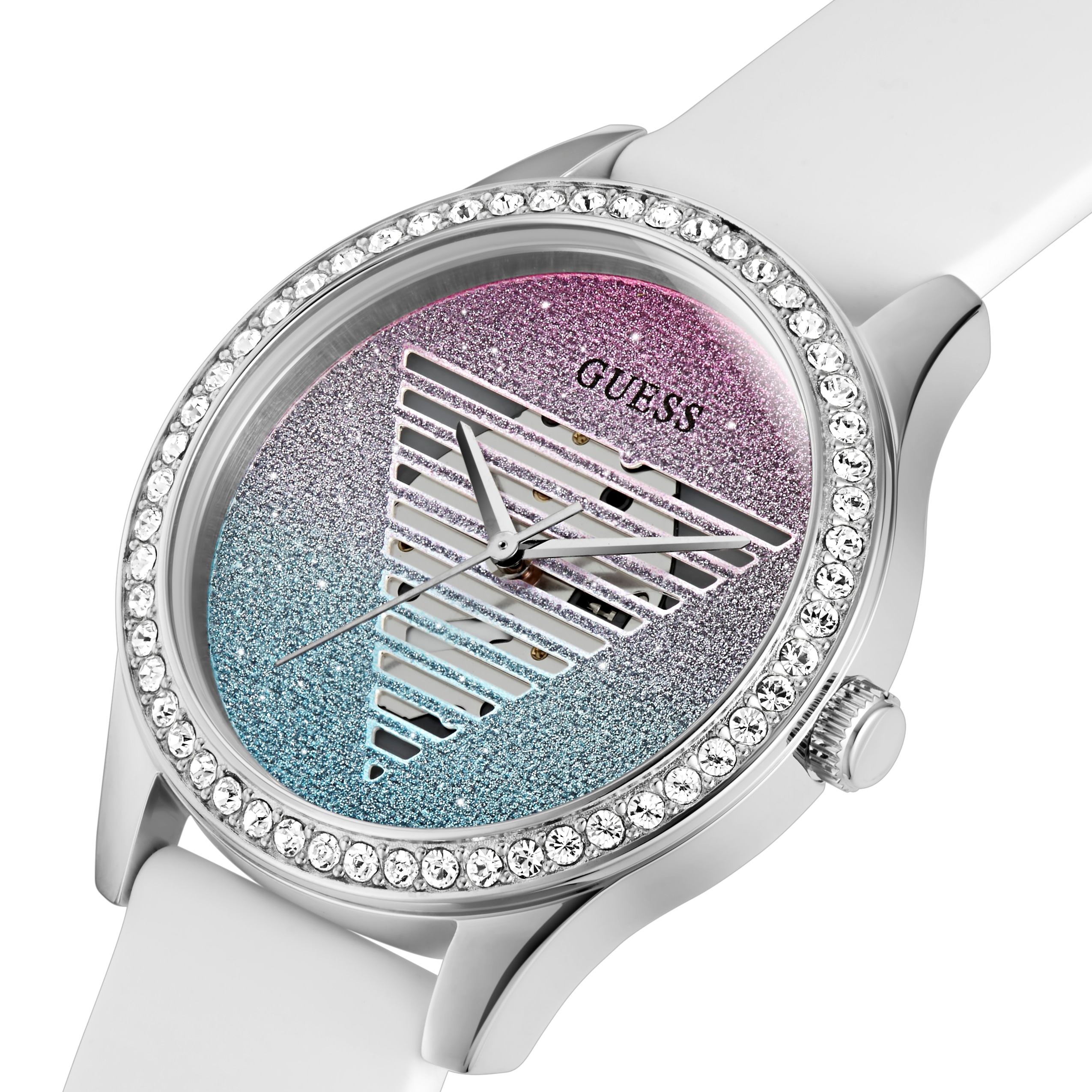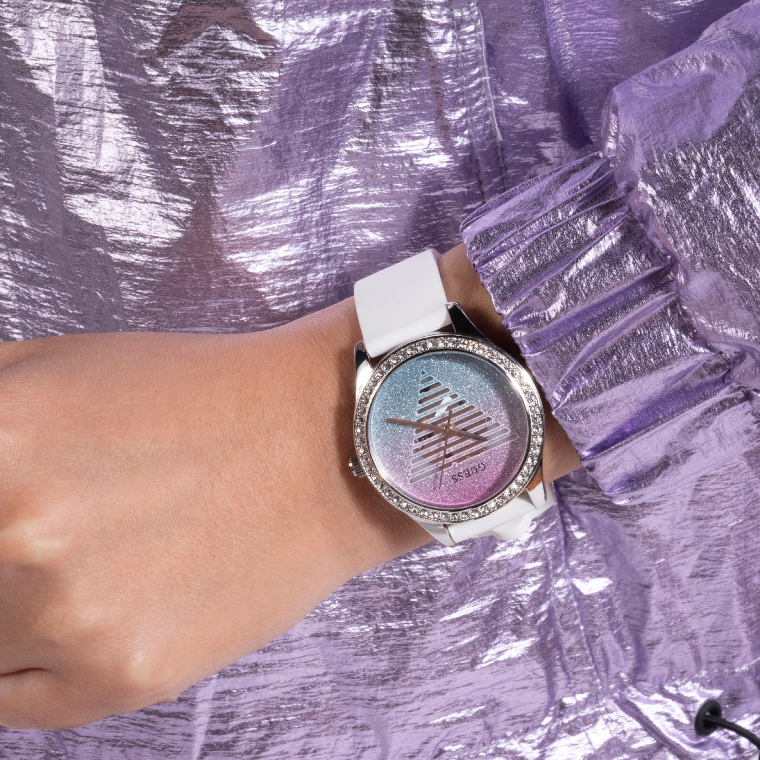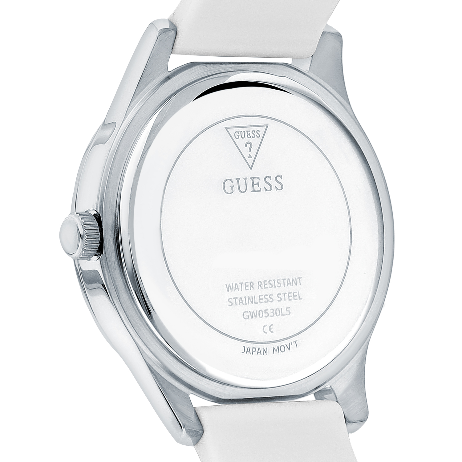 Женские наручные часы GUESS модель GW0530L5 из коллекции GUESS TREND. Японский кварцевый механизм Y121 SEIKO (TMI) использующий элемент питания SR626SW. Стальной корпус размера 38 мм. Минеральное стекло. Силиконовый ремешок. Водостойкость 3 АТМ (защита от брызг). Остерегайтесь попадания часов в воду. GUESS – лидер в индустрии фешен часов по длительности присутствия на рынке и по ширине коллекции, ежегодно создает более 100 новинок. Компания GUESS Watches, основанная в 1984 году в Лос-Анджелесе (США) как пионер революции, возглавила трансформацию часов из простого инструмента для определения времени в стильный аксессуар. Бренд не боится экспериментировать. Разнообразные формы корпуса, сложно декорированные циферблаты, уникальный дизайн браслетов. GUESS – это про тренды и технологии в мире моды. Это яркие и дизайнерские часы, призванные угодить самым смелым фешн-драйверам и энтузиастам моды по всему миру. Страна-изготовитель: Филиппины. При изготовлении используются только надежные Японские механизмы. ВНИМАНИЕ! Заявленная водостойкость гарантируется только при плотно закрытой или закрученной заводной головке!