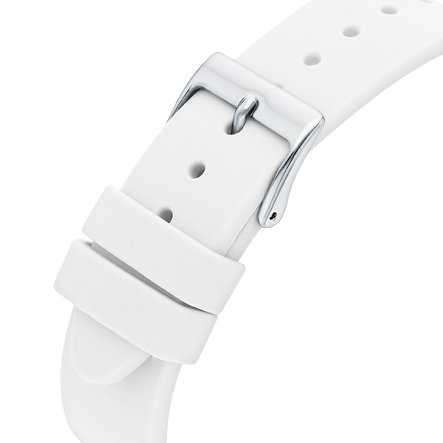 Часы выглядят аккуратно на руке, несмотря на довольно большой циферблат. Стразы сияют. Выбрала эту модель тк благодаря резиновому ремешку не такие тяжелые и претенциозные как аналоги с металлическим. Покупкой довольна