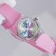 Не такие яркие , как на картинке, но смотрятся лучше, чем розовые. Ремешок ярко голубой, в подарок приложен запасной ремешок красный и резиночка браслет белая перламутровая. Часики ходят без отставаний, тикают.. На браслете дырочек много и на детскую ручку хорошо застёгиваются. Ребёнок в восторге, то и дело время спрашивает😁