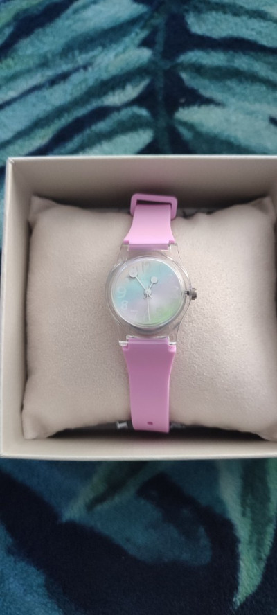 Не такие яркие , как на картинке, но смотрятся лучше, чем розовые. Ремешок ярко голубой, в подарок приложен запасной ремешок красный и резиночка браслет белая перламутровая. Часики ходят без отставаний, тикают.. На браслете дырочек много и на детскую ручку хорошо застёгиваются. Ребёнок в восторге, то и дело время спрашивает😁