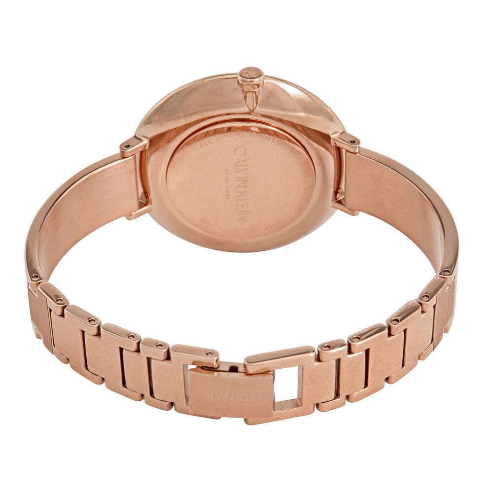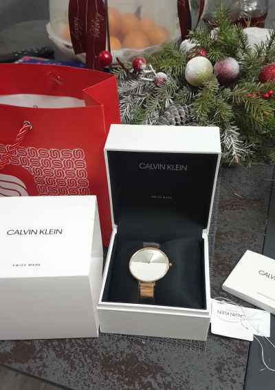 Женские кварцевые часы Calvin Klein коллекция Rise модель K7A23646. Круглый корпус из нержавеющей стали. PVD покрытие цвета розового золота. Два жестких элемента браслета примыкают к корпусу часов. Аналоговый циферблат смещен вверх от центра и имеет цветовой переход с белого на серебристый. Тонкие аккуратные стрелки. Швейцарский кварцевый механизм ETA 901.001 использующий элемент питания RENATA 321 (SR616SW). Устойчивое к царапинам минеральное стекло. Заводная головка с защитой. Прочная задняя крышка. Размер корпуса: 38 мм. Толщина корпуса: 8 мм. Ширина ремешка: 12 мм. Стыковочные звенья с застежкой ювелирного типа. Водостойкость 3 АТМ (защита от брызг). Остерегайтесь попадания часов в воду. Функции: часы, минуты. Компания CALVIN KLEIN WATCH + JEWELRY Co. Ltd. занимает ведущую позицию среди эксклюзивных представителей швейцарского часового искусства в сегменте модной индустрии. Маркировка SWISS MADE, расположенная внизу циферблата, означает что полный цикл производства изделия располагается в Швейцарии.