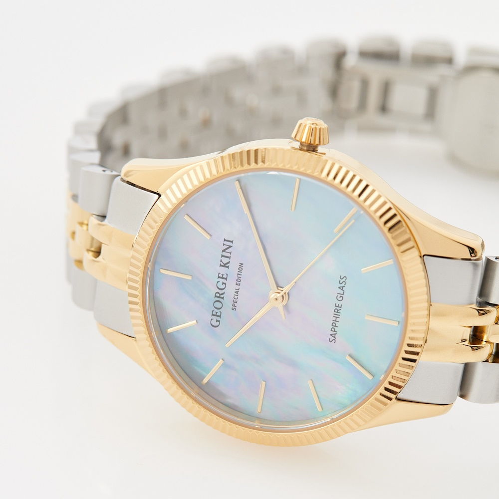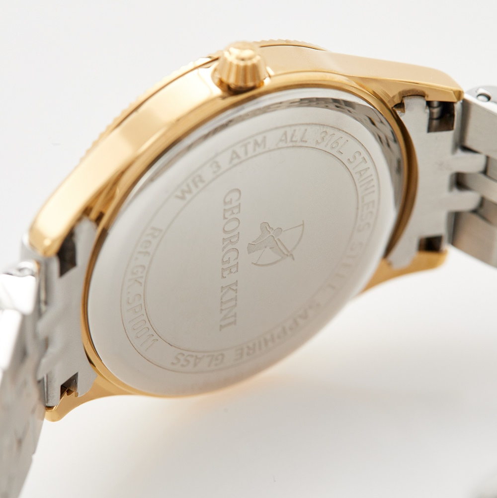 Часы George Kini коллекции SPECIAL EDITION воплощают эксклюзивность и элегантность, предлагая идеальное сочетание современного дизайна и передовых технологий. Корпус из нержавеющей стали 316L диаметром 36 мм с сапфировым стеклом с антибликовым покрытием надежно защищает циферблат, сохраняя его безупречный вид. Циферблат с эффектом Sunray отражает свет, придавая часам особое очарование. Внутри — Японский кварцевый механизм, гарантирующий точность и долгосрочную надежность хода. Водозащита 5 bar (50 m/165 ft), обеспечивающей защиту от дождя и брызг.