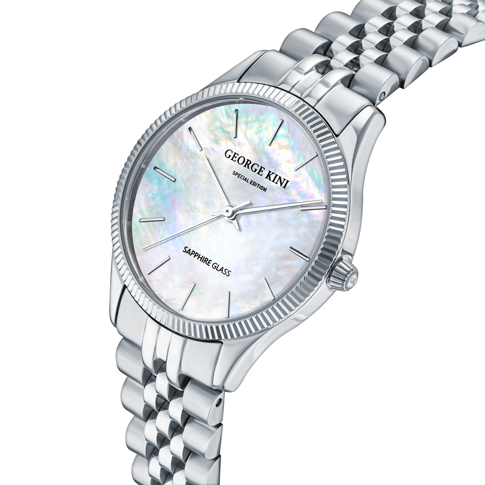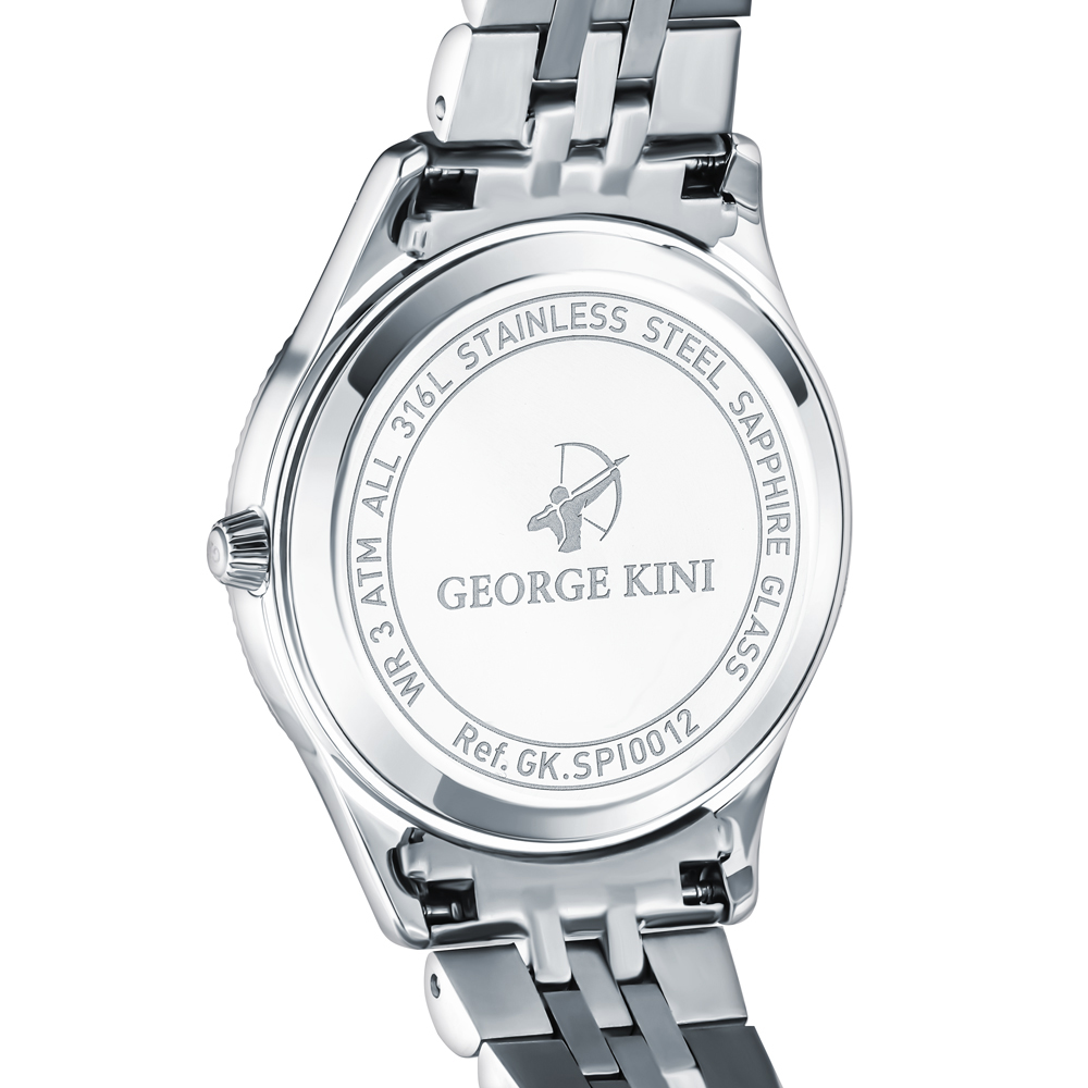 Часы George Kini коллекции SPECIAL EDITION воплощают эксклюзивность и элегантность, предлагая идеальное сочетание современного дизайна и передовых технологий. Корпус из нержавеющей стали 316L диаметром 36 мм с сапфировым стеклом с антибликовым покрытием надежно защищает циферблат, сохраняя его безупречный вид. Циферблат с эффектом Sunray отражает свет, придавая часам особое очарование. Внутри — Японский кварцевый механизм, гарантирующий точность и долгосрочную надежность хода. Водозащита 5 bar (50 m/165 ft), обеспечивающей защиту от дождя и брызг.