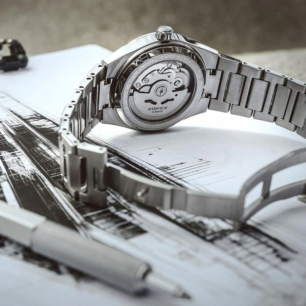 Новинка августа 2025 года! Впервые за 50 лет компания CASIO выпустила модель механическую с автоподзаводом! Мужские наручные часы CASIO AUTOMATIC модель EFK-100D-3A из коллекции CASIO EDIFICE. Стальной корпус размера 39*43,5 мм. Неоновый циферблат. Светящееся покрытие обеспечивает длительную подсветку в темное время суток после короткого воздействия света. Механический модуль SEIKO NH35A в часах заводится автоматически при движении и не требует регулярного ручного завода. После полного завода часы могут работать без подзавода примерно 41 час. Сапфировое стекло. Модель на стальном браслете. Водостойкость 10 АТМ (подходит для плавания без глубоких погружений). Casio Computer Co., Ltd. — японский концерн известный как производитель калькуляторов, аудиооборудования, КПК, фотокамер, музыкальных инструментов, планшетов и наручных часов. Основное представительство компании находится в Токио (Япония). Производственные площадки находятся в нескольких странах юго-восточной азии (Японии, Китае, Корее, Въетнаме, Малайзии). ВНИМАНИЕ! Заявленная водостойкость гарантируется только при плотно закрытой или закрученной заводной головке!