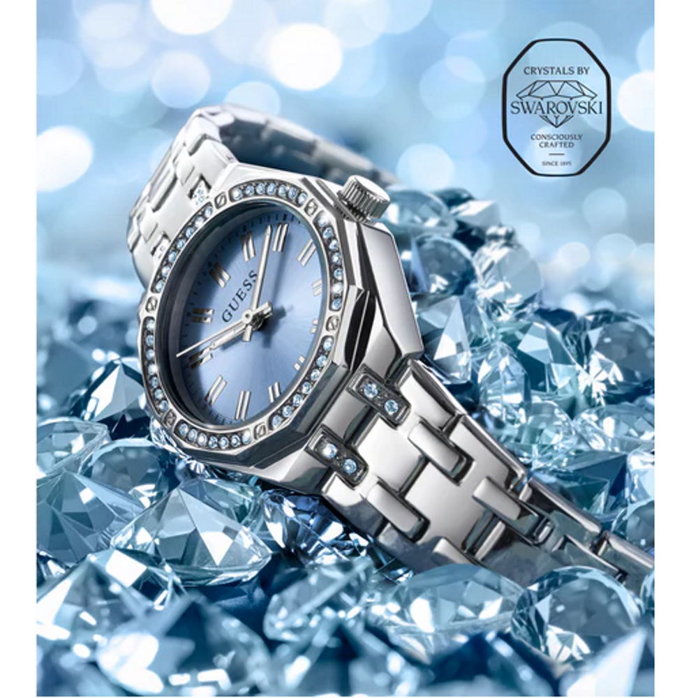 Женские оригинальные кварцевые часы GUESS Limited Edition with Swarovski ReCreated™ crystals артикул GW1010L1 из коллекции TREND. Стальной корпус размера 25 мм толщиной 8 мм ,средний вес 60 гр. Японский кварцевый механизм Y121F3 работающий на элементе питания SR626SW. Минеральное стекло. Водозащищенность 3 bar (30 m/99 ft) допускает попадание на корпус влаги. НЕ ПОГРУЖАТЬ изделие в воду. Штаб-квартира компании GUESS расположена в Лос-Анджелес США. Часы марки производятся на дву заводах компании, расположенных в Китае и на Филиппинах. У нас представлены модели выпущенные на Филиппинском заводе. В моделях используются надежные японские механизмы Miyota и Seiko. ВНИМАНИЕ! Заявленная водостойкость гарантируется только при плотно закрытой или закрученной заводной головке!