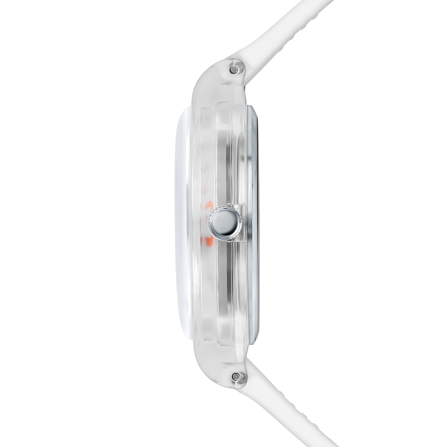 Корпус выполнен из пластика, минеральное стекло с антибликом защищает циферблат от внешнего воздействия. Японский кварцевый механизм Seiko PC21S обеспечивает точный ход и оснащен функциями времени в 12 часовом формате. Водозащита 3 bar (30 m/99 ft) защитит от брызг и дождя.