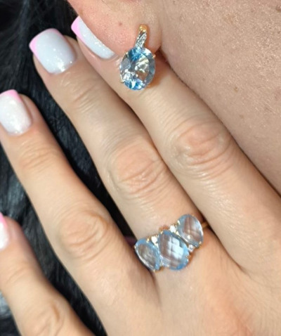 В SUNLIGHT приобрела роскошные серьги с голубыми топазами и бриллиантами ✨ Собрать комплект к имеющемуся кольцу оказалось непросто, из-за необычной огранки камня. Однако продавец - консультант магазина (набережная Ялты) Элина, любезно представила изделия для примерки и вауля - комплект изящно собран, а серьги просто невероятно сияют !!! Я в восхищении, теперь они мои фавориты 🩵 Благодарю продавца - консультанта и магазин SUNLIGHT♥️