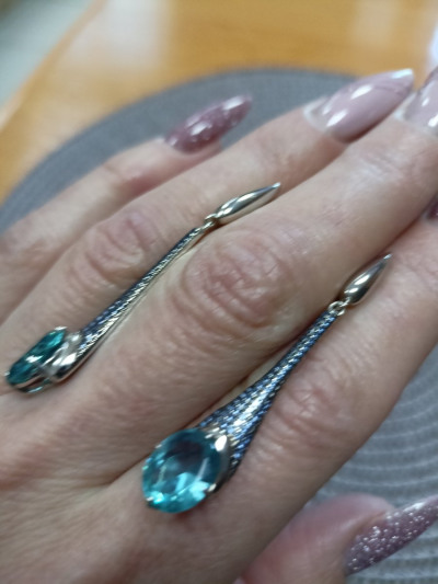 Серебряные серёжки с фианитами и турмалином очень красивый камень покупалась в наборе с кольцом шикарный камень при разном освещении меняет свой цвет украшения не на каждый день но на любое торжественное мероприятие подойдёт и подчеркнёт ваш наряд и будет приковывать взгляды к покупке рекомендую