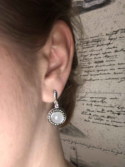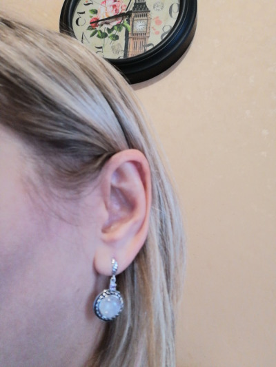 Долго выбирала между этими серьгами и пусетами, спасибо продавцу со стороны ей было виднее и не прогадала. Отличное ювелирное изделие, выполнено качественно. Лунный камень(а я хотела именно с ним серьги) красиво огранен. Смотрятся отлично