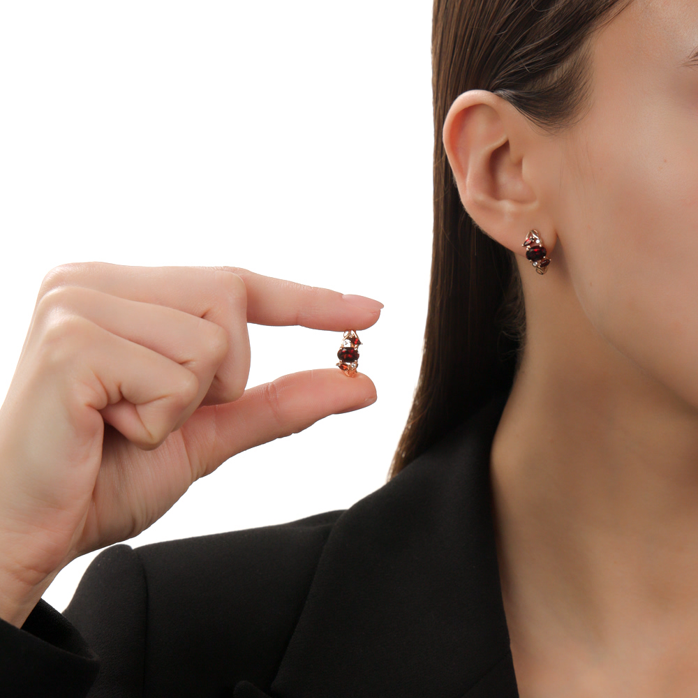 В редких случаях характеристики украшения или упаковка могут иметь отличия от представленных на фото или в описании.Серьги с 2 гранатами природными, 1.82 карат;
