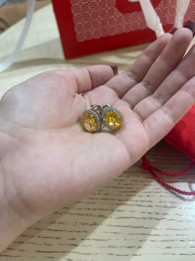 Крупные камни, сверкают в ушах, очень красивые. Удачная застежка, не провисает
