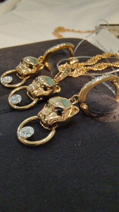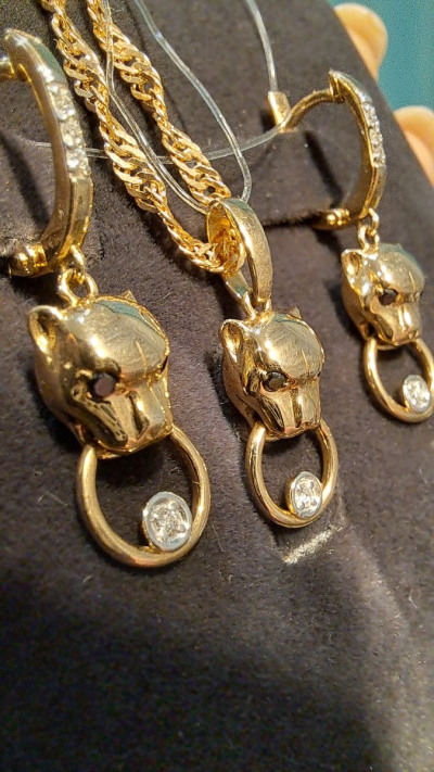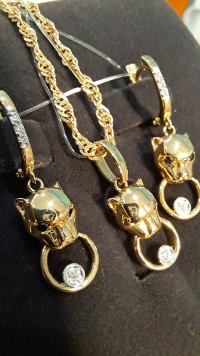 Серёжки классные!!! Восторг! Глаза с черными брилиантами, колечко в зубках — двигается, брилианты хорошей чистоты💎💎💎, вес сережек 3,98, замочки крепкие — счелкают, купила в комплекте с подвеской, серьги не мелкие и не громоздкие, самое то, что надо. Однозначно рекомендую!