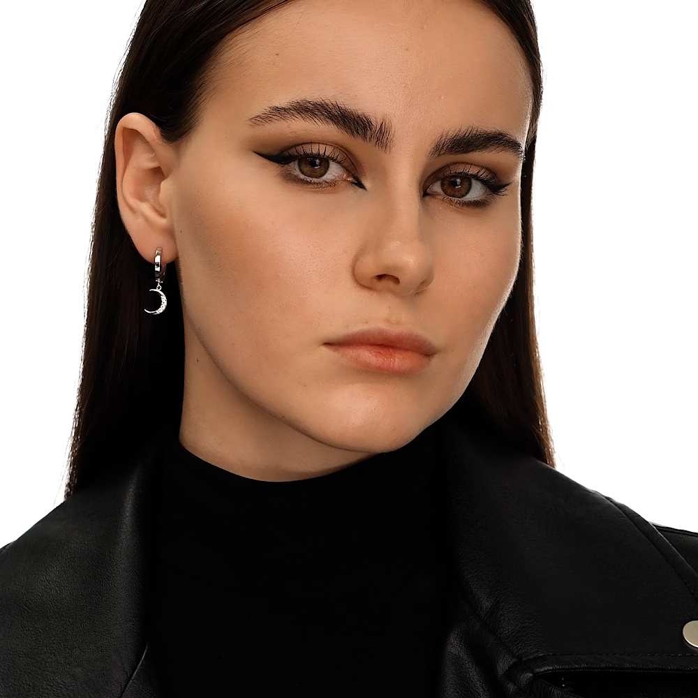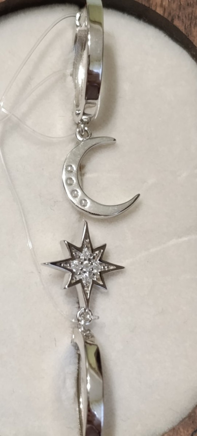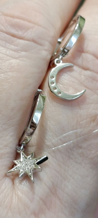 Колечки с подвесками в виде месяца и звезды. Симпатичные сережки для девушки на каждый день.
