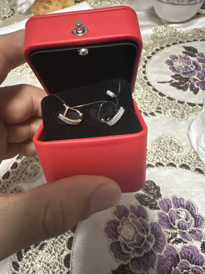 Красивые сережки для дочки. Чего стоит шкатулочка с кнопкой. Как красиво оформлено все, с бантиком. Это восторг. Серьги красивые. Мы долго выбирали