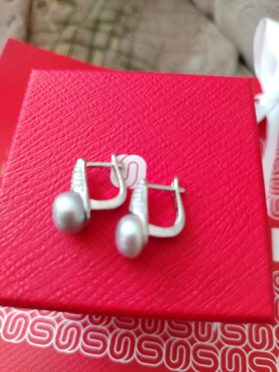 Серёжки подарил муж. Очень понравились! Восхитил цвет жемчужин. Серьги удобные, красивые, оригинальные. Хочется кольцо к ним с таким же жемчугом.
