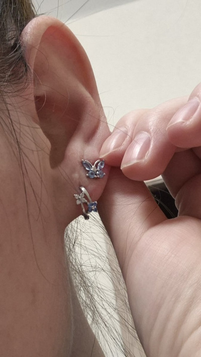 Очень красивые детские серьги, цвет больше лазурно голубой, на тонкую мочку, Очень красиво смотряться,к покупке рекомендую.👍👍👍👍👍👍