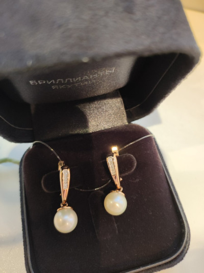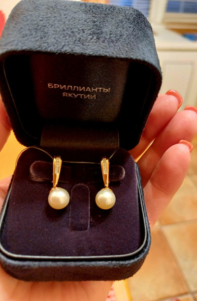 Давно хотелось такие серьги с жемчугом. Долго выбирала. Попала на хорошую скидку. Сами серьги нарядно смотрятся, мне очень комфортно, подошли по размеру, дизайн простой, но интересный. Бриллианты хорошо дополняют. В целом я очень довольна!