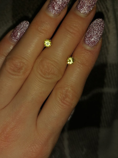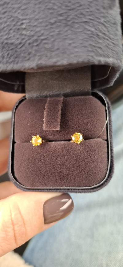 Давно хотела купить солнечные желтые сапфиры. Покупкой осталась довольна. Камни достаточно яркие, в ушах сидят хорошо. Напоминают солнышки.