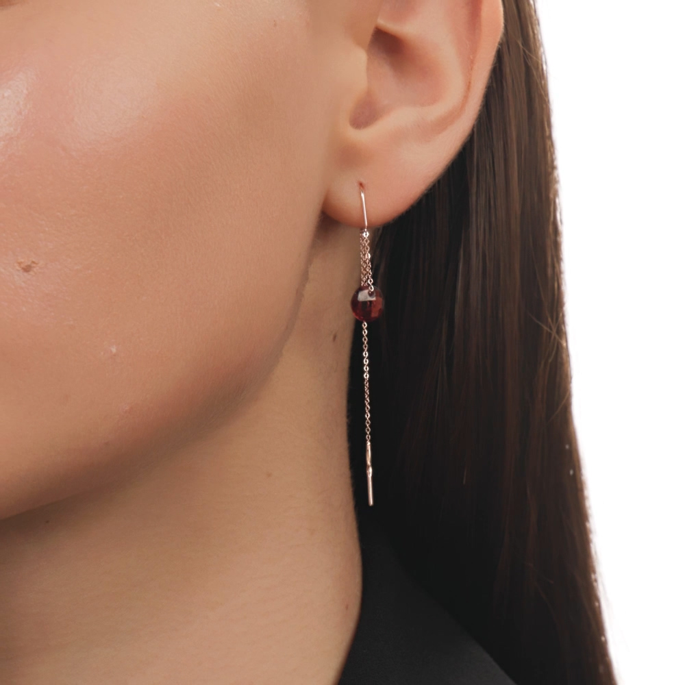 Серьги-протяжки с гранатом.