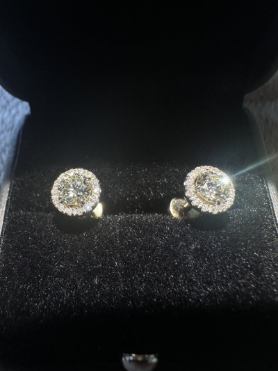 2 бриллиантами желтыми природными, 0.64 карат, огранка круг 57 граней, цвет 8-5, чистота 7, тип огранки А;