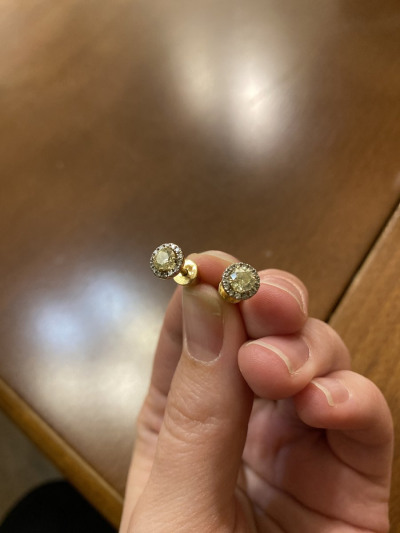 Замечательные серьги пусеты с желтыми бриллиантами.