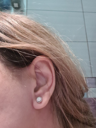 • Серьги с 28 бриллиантами природными, 0.11 карат, огранка круг 17 граней, цвет 2, чистота 2, тип огранки А;