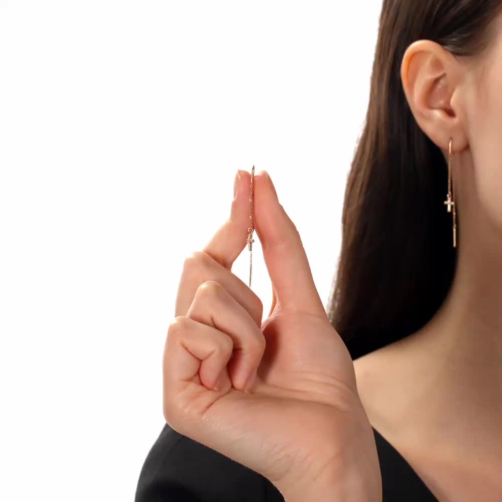 Очень нежные, красивые, лёгкие сережки. По длине отличные. Купили дочери. Белое золото крестик отлично сочетается с цепочкой из серебра.