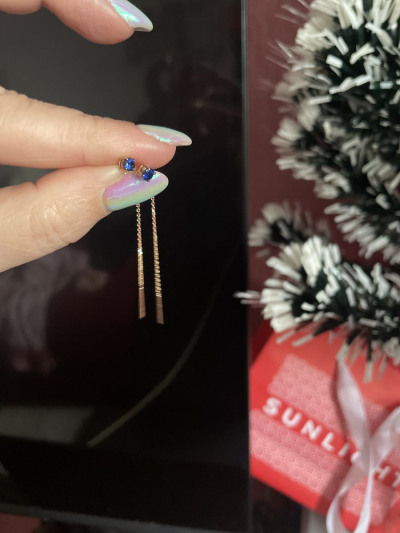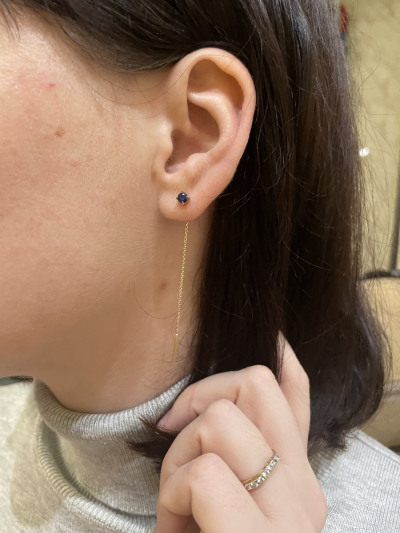 Серьги с 2 сапфирами синтетическими, 0.43 карат;