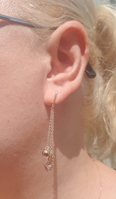 Классные, игривые сережки как колокольчики звенят приятно, привлекают внимание, люблю живые сережки. Вес 3.90