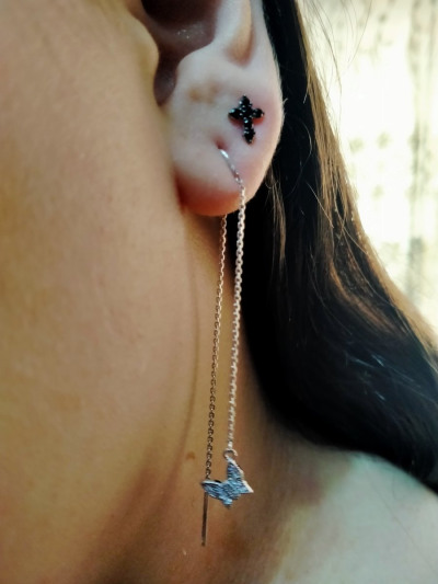 Лёгенькие, миниатюрные серёжечки. Смотрятся очень женственно. Обращаться с ними, конечно надо нежно...
